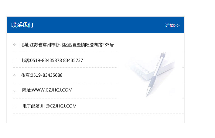 傳真:0519-83435688    郵編:213135    網址:WWW.czjhgj_com.wuhanliangling.com    電子郵箱:JH@czjhgj_com.wuhanliangling.com
